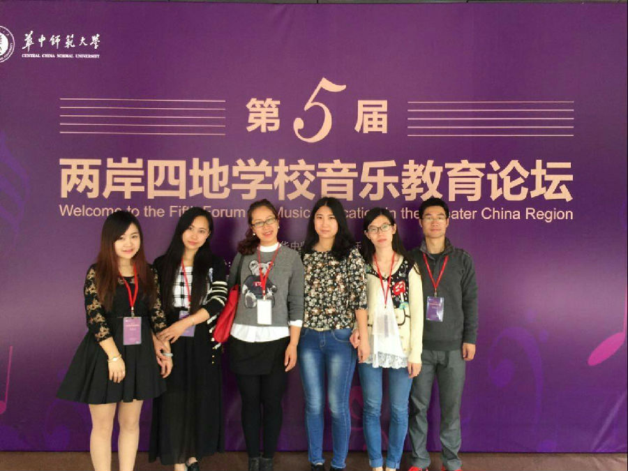4月17日,我校音乐学院研究生邹悦、姚婷婷等七名同学在詹燕君老师的带领下参加由华中师范大学主办的“第五届两岸四地学校音乐教育论坛,与香港,澳门,台湾的代表们以及中国音乐学院,华中师范大学教授、专家等进行学习交流。
